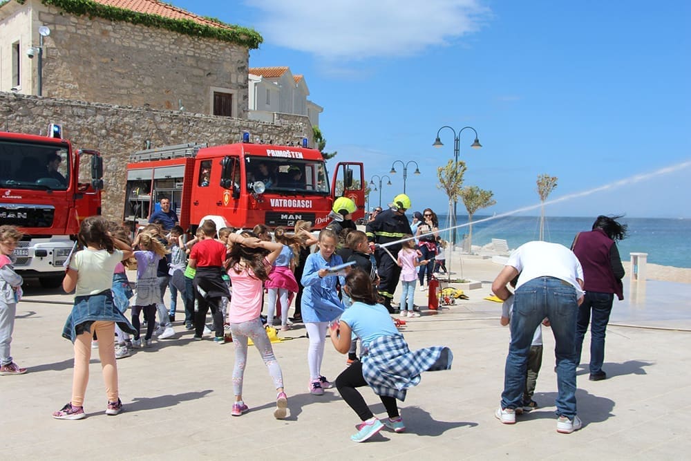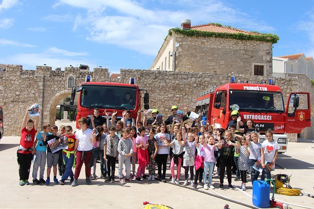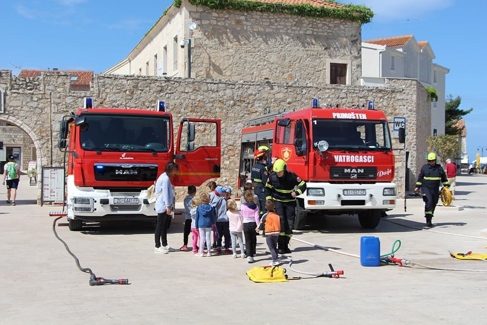 U posjet su im stigli i primoštenski osnovnoškolci te djeca iz vrtića Bosiljak i Brat Sunce, koja su vatrogascima uručili zahvalnicu za njihov mukotrpan, a često i opasan rad.
