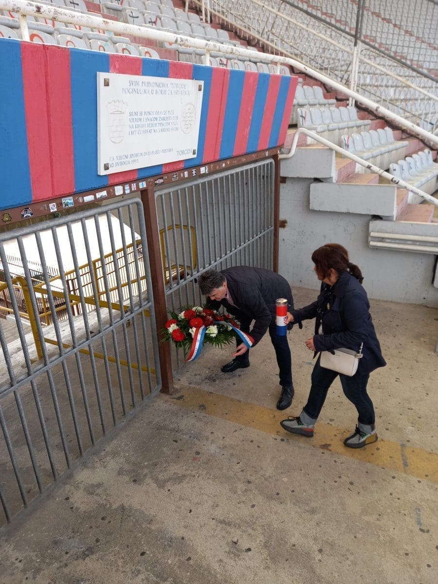 Pripadnici "Škverskog bataljuna" iz Udruge veterana Domovinskog rata "Brodosplit" polaganjem cvijeća i paljenjem svijeća odali su počast poginulim hrvatskim braniteljima škvera i pripadnicima Torcide u Parku hrvatskih mučenika u Brodosplitu i na sjevernoj tribini poljudskog stadiona.