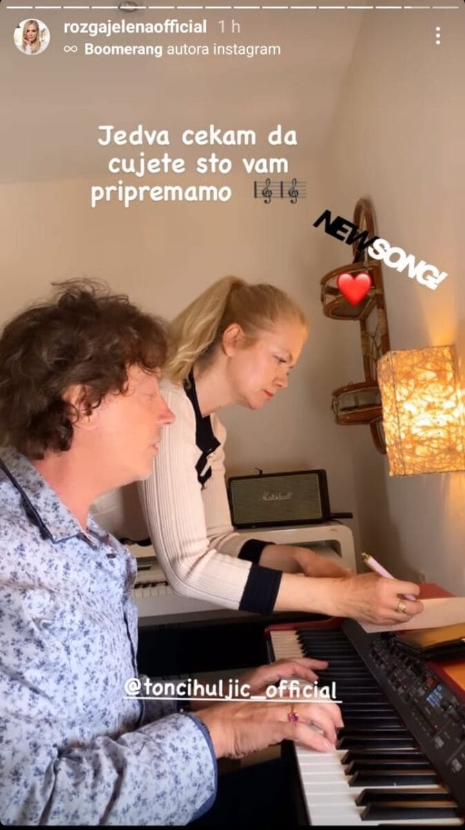 - Jedva čekam da čujete što vam pripremamo- napisala je Jelena uz sliku na kojoj Vjekoslava piše, a Tonči svira. Zatim je objavila snimku na kojoj Tonči i ona uživaju na balkonu s pogledom na Splitsku rivu.