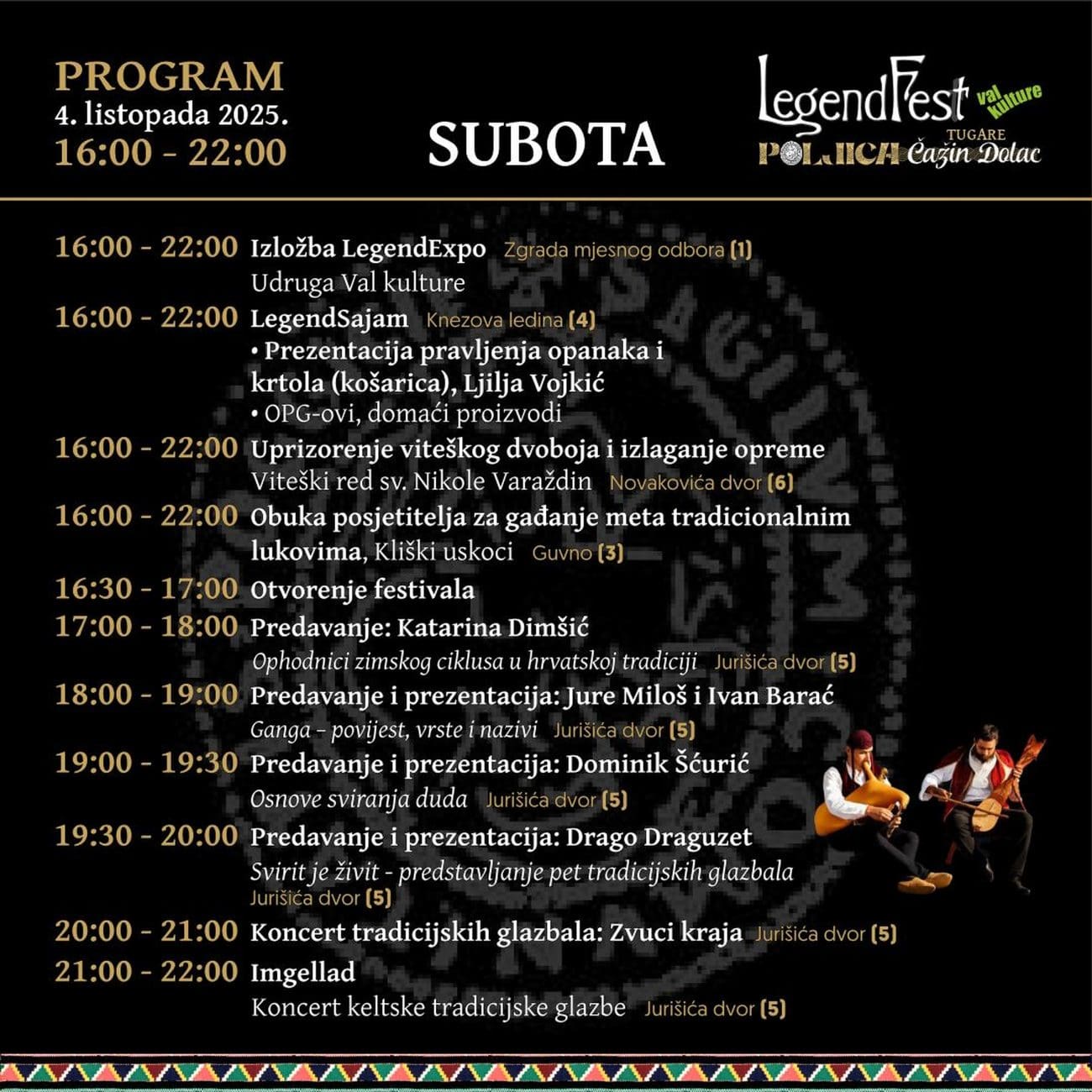 Nakon što je prošle godine Legendfest održan u etno selu Dolovi u Srijanima (Gornja Poljica), ove godine festival se seli u eko-etno selo Čažin Dolac u Tugarama (Srednja Poljica). Festival će trajati dva dana, od 4. listopada u 16 sati do 5. listopada u 22 sata.