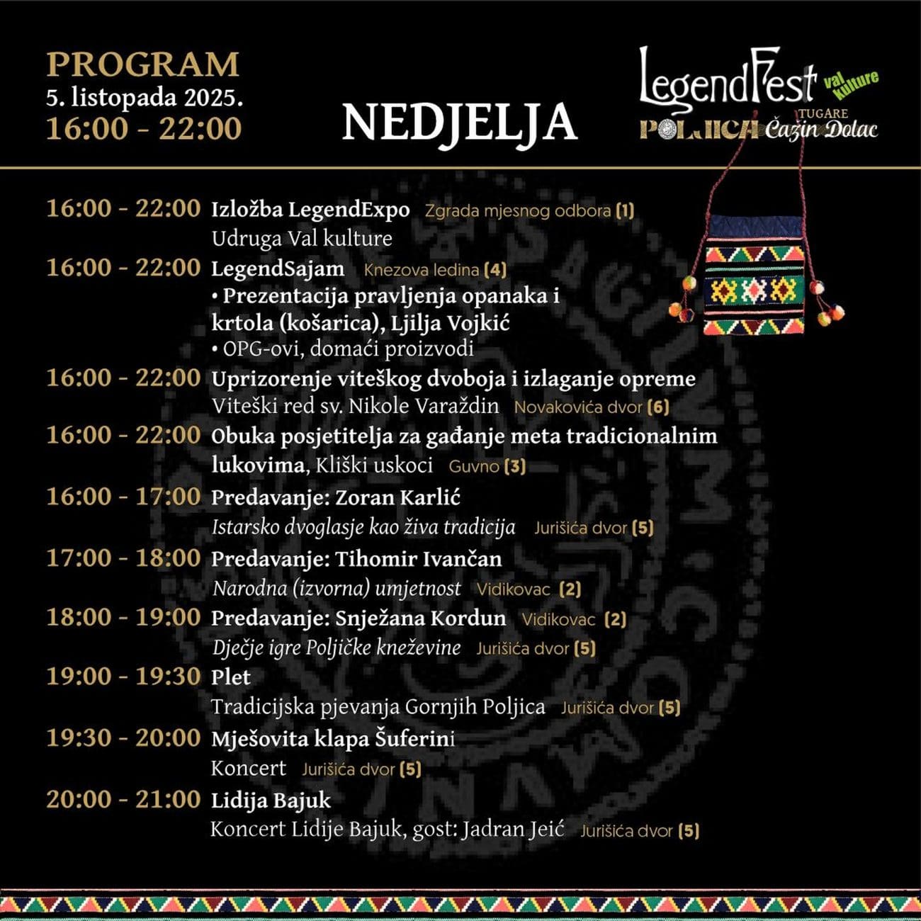 Nakon što je prošle godine Legendfest održan u etno selu Dolovi u Srijanima (Gornja Poljica), ove godine festival se seli u eko-etno selo Čažin Dolac u Tugarama (Srednja Poljica). Festival će trajati dva dana, od 4. listopada u 16 sati do 5. listopada u 22 sata.