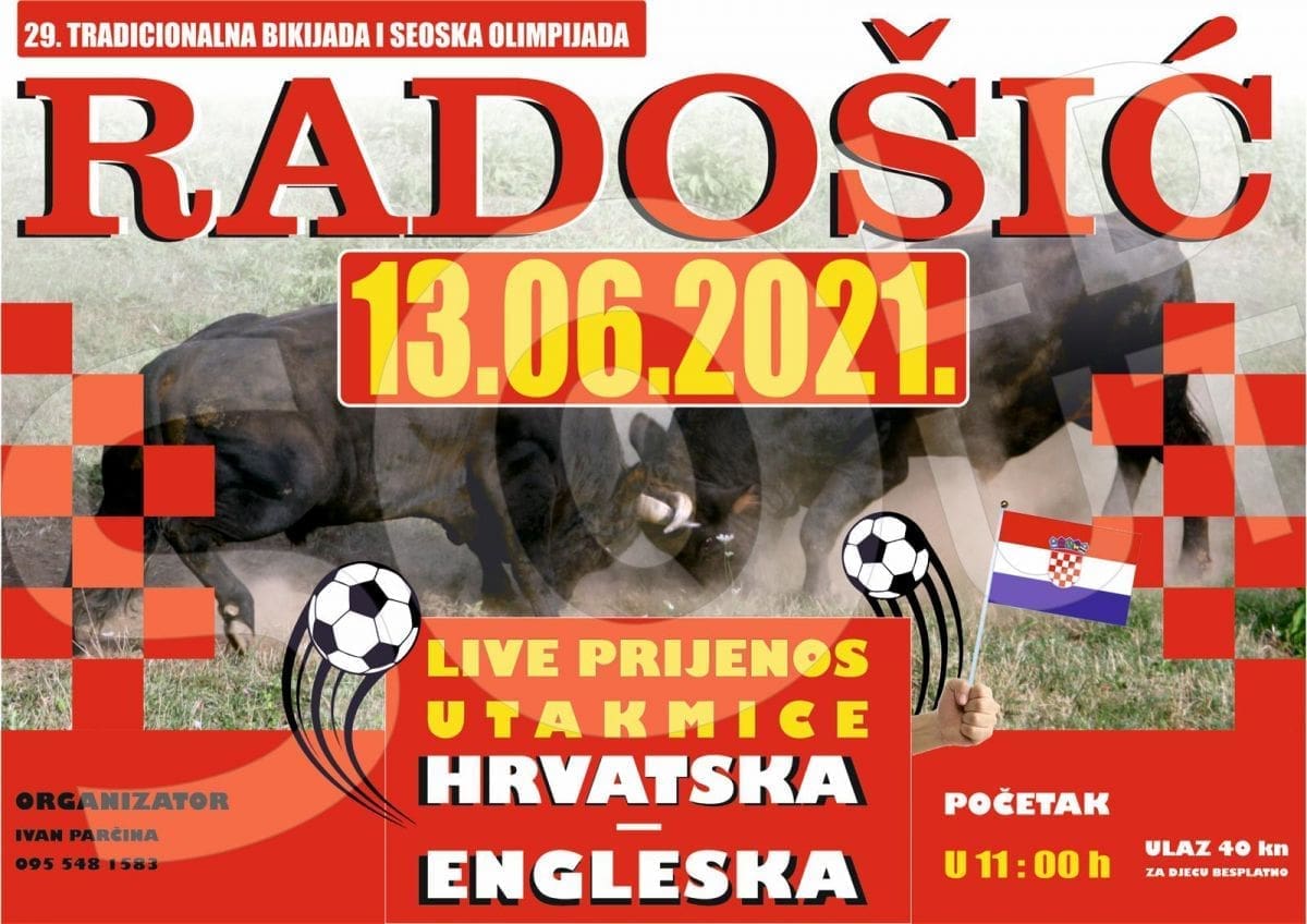 Radošić zove... I ove godine uz pridržavanje svih epidemioloških mjera održava se, 29. po redu, Seoska olimpijada i borba bikova na terenima Bik Commerca d.o.o. u stoljetnoj šumi hrasta medunca (zaštićenom spomeniku prirode) u nedjelju 13. lipnja.