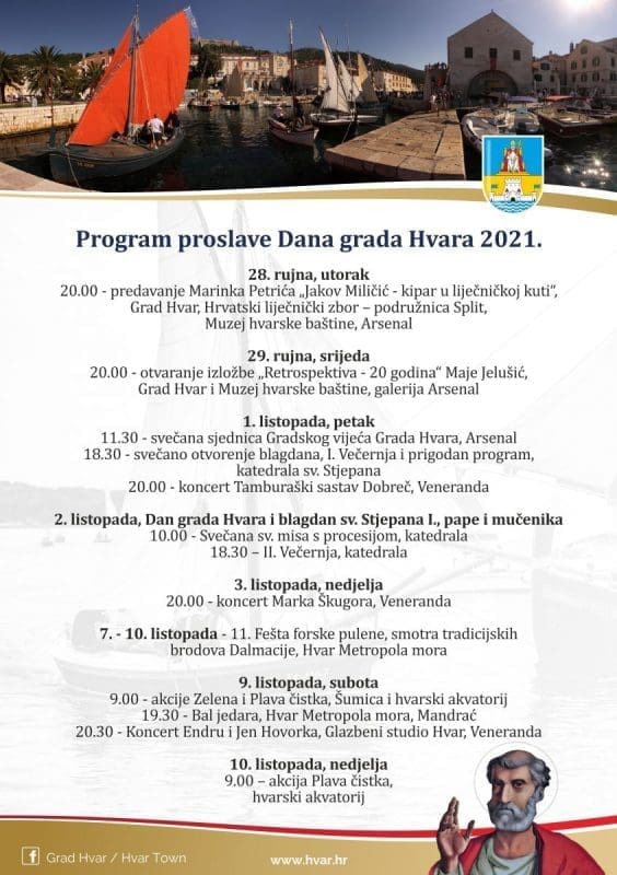 Proslava Dana grada Hvara i blagdana sv. Stjepana I., pape i mučenika, zaštitnika grada Hvara i hvarske biskupije, kojega Hvarani slave 2. listopada, održat će se od 28. rujna do 10. listopada.