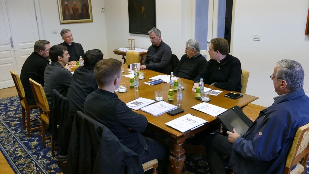 Sastanku koji se održao u zgradi Nadbiskupskog ordinarijata u Splitu u srijedu, 6. ožujka, nazočili su splitsko-makarski nadbiskup mons. Marin Barišić, generalni vikar mons. Miroslav Vidović, kancelar don Ratomir Vukorepa, maestro don Šime Marović, don Ante Mateljan, don Ivica Žižić, rektor i vicerektor Centralnog bogoslovnog sjemeništa u Splitu don Jure Bjeliš i don Ivan Urlić te nadbiskupov tajnik don Gabrijel Kamber.