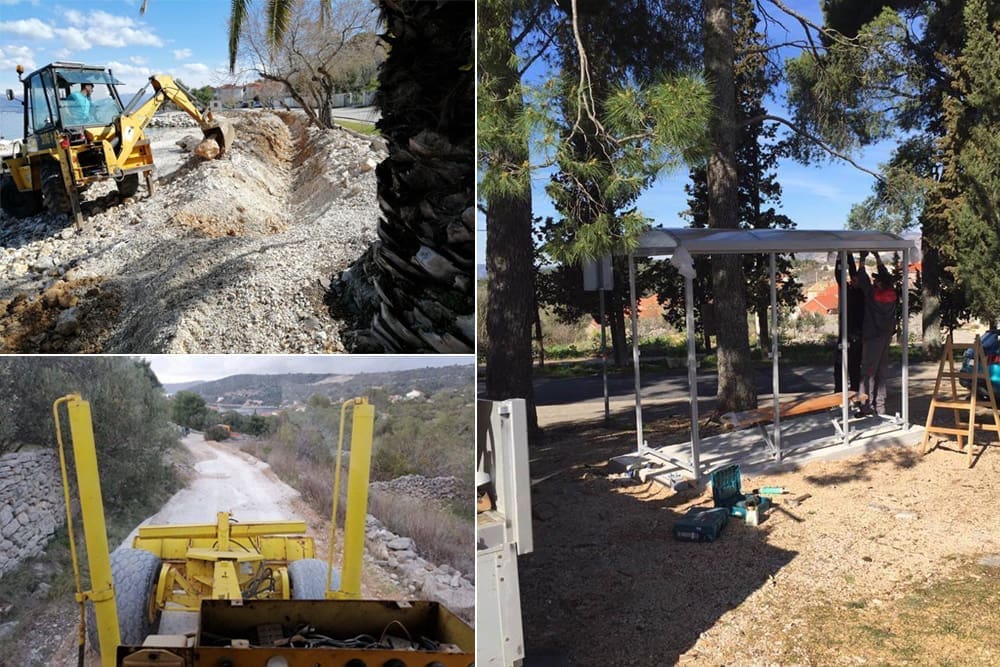 - U posljednjem tjednu započet je, a i završen dio manjih intervencija i investicija u nekoliko naših mjesnih odbora. U Žednom je postavljena nova kućica za autobusnu stanicu te su asfaltirani oštećeni djelovi ceste. Mastrinka je dobila novi asfalt u ulici I. Mažuranića i B.J. Trogiranina. U Arbaniji je započela sanacija potpornih zidova uz obalu, na plaži Tri sestrice postavljaju se tuševi, a na Drveniku Velom asfaltirana je dionica puta prema Krknjašima - napisao je Bilić.