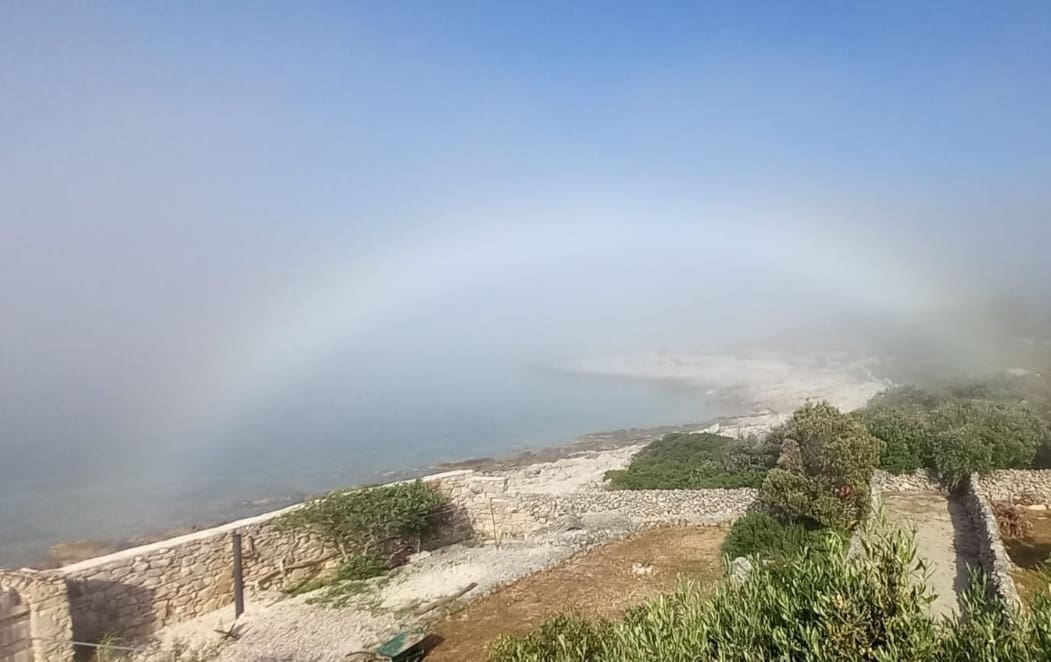 Magle je bilo i uz obale Drvenika, a naša čitateljica snimila je rijetku "bijelu dugu".