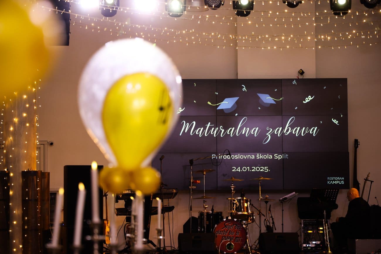 Preko 100 maturanta Prirodoslovne škole Split svoju najvažniju večer u životu provelo je u idiličnom ambijentu Restorana Kampus. Crvenim tepihom Restorana Kampus su prošetali u pratnji profesora dok su ih s malenih tribina bodrili ponosni roditelji i članovi obitelji. Nakon himne, okupljene maturante je pozdravila ravnateljica Marija Pustak. Maturante je do dugo u noć zabavljao Festivo bend.