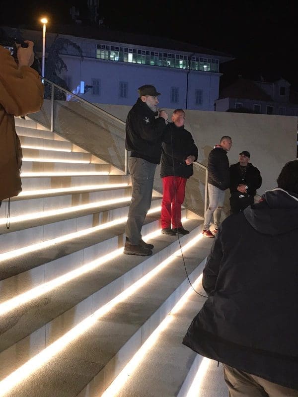 Marko Francisković je nakon velikog prosvjeda protiv covid-potvrda u Zagrebu, na kojem se okupilo oko 20.000 ljudi i na kojem je i sam govorio, dio prosvjednika poveo pred zgradu HRT-a.