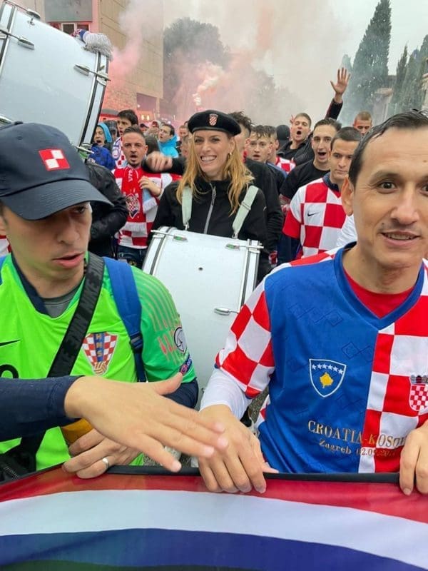 Navijačica u korteu, Kristina Renić iz Tomislavgrada, posebno se istaknula zbog velikog bubnja, a rekla je za 24 sata da stalno putuje na utakmice s navijačkom udrugom.