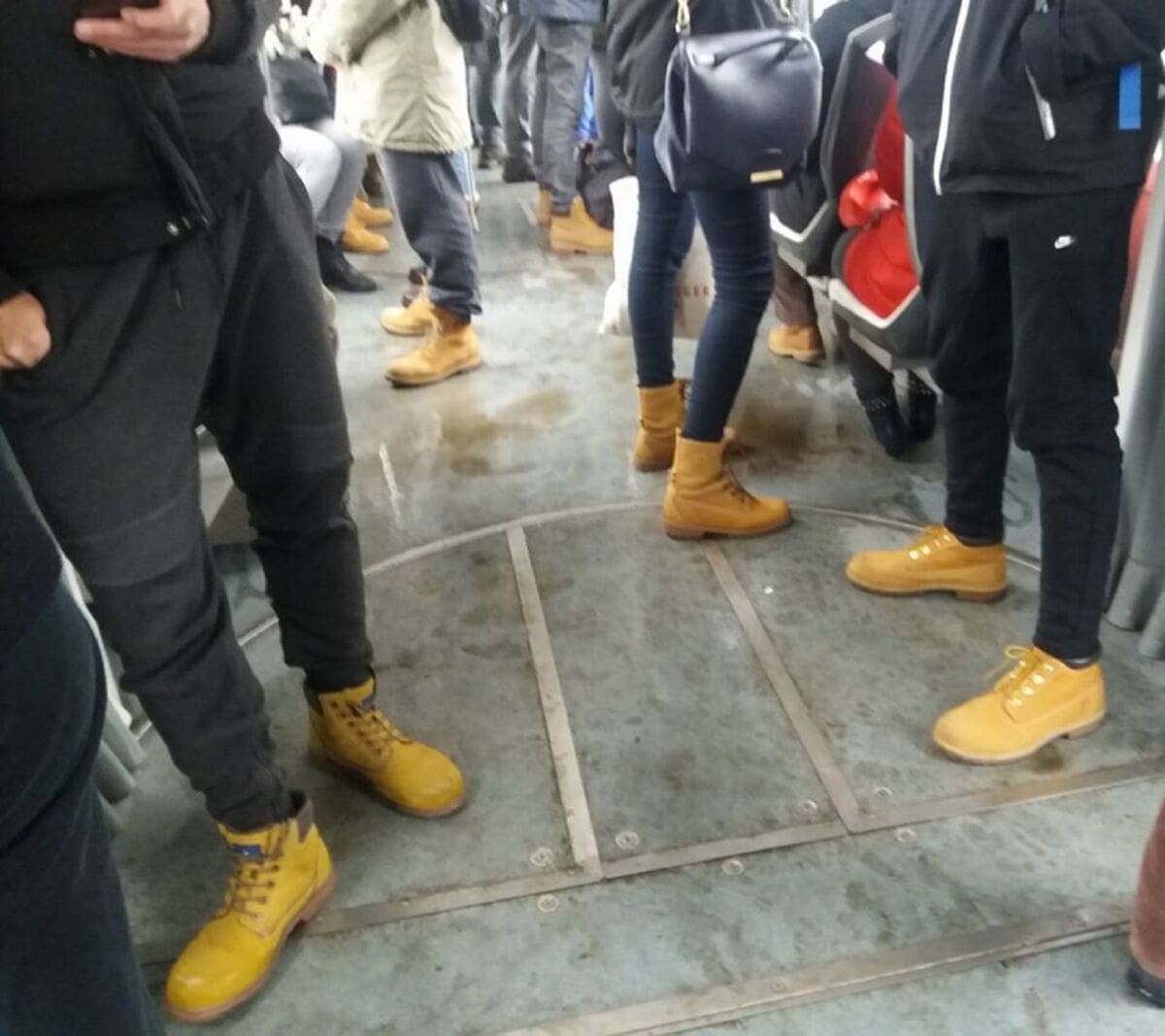 Naime, uspjela je u jednom malom dijelu tramvaja uloviti nekolicinu ljudi u popularnim žutim čizmama Timberland odnosno zimskim bilim starkama. "Dress code u šestici" - komentirala je autorica fotografije, i zbilja, kao da je riječ o nekom vojnom autobusu ili reklami, a ne o nasumično snimljenim ljudima u tramvaju.