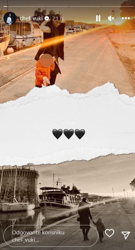 Fotografirao je svoju suprugu Katarinu koja je za ruku vodila sina Gabrijela, a na drugom InstaStoryju nalazi se Gabrijel koji je nasmijan pozirao u jaknici i kapi.