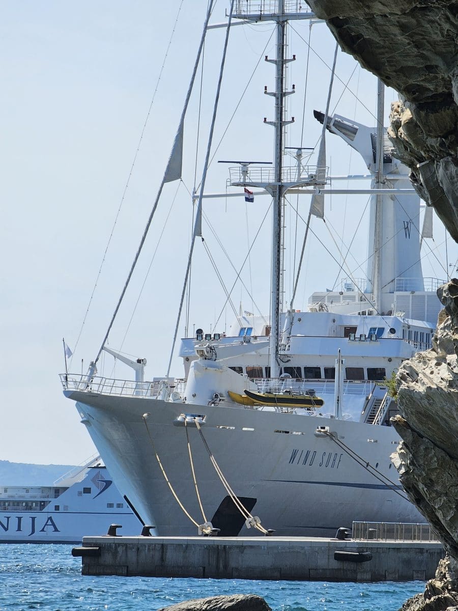 Splićani i turisti danas imaju pravu atrakciju u luci vrijednu fotografiranja. U Split je doplovio Wind Surf, kruzer koji slovi kao jedan od najromantičnijih brodova na svijetu.