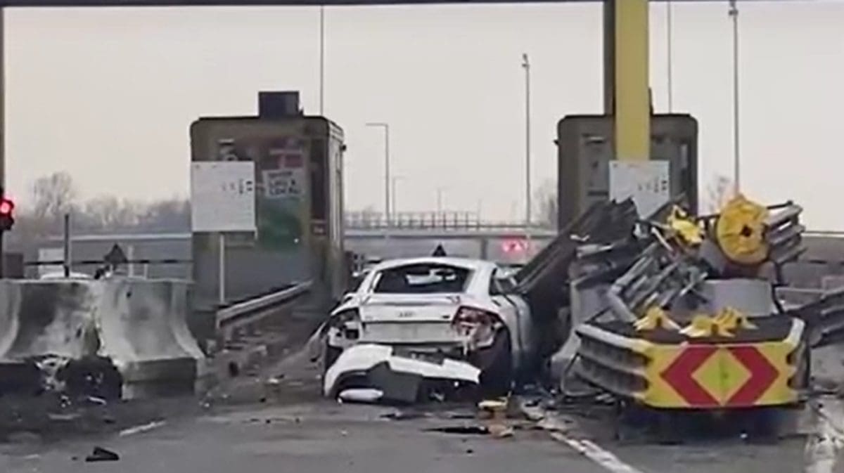 TEŠKA PROMETNA NESREĆA NA AUTOCESTI Vozač udario u naplatnu postaju, auto je neprepoznatljivo