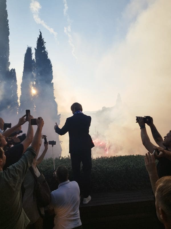 Kako je i bilo najavljeno, pojavio se u klupskim prostorijama, njega i suprugu Raquel je dočekala članica uprave Marinka Akrap. Prvo je izašao pred navijače, a nakon toga je odradio službeno predstavljanje.