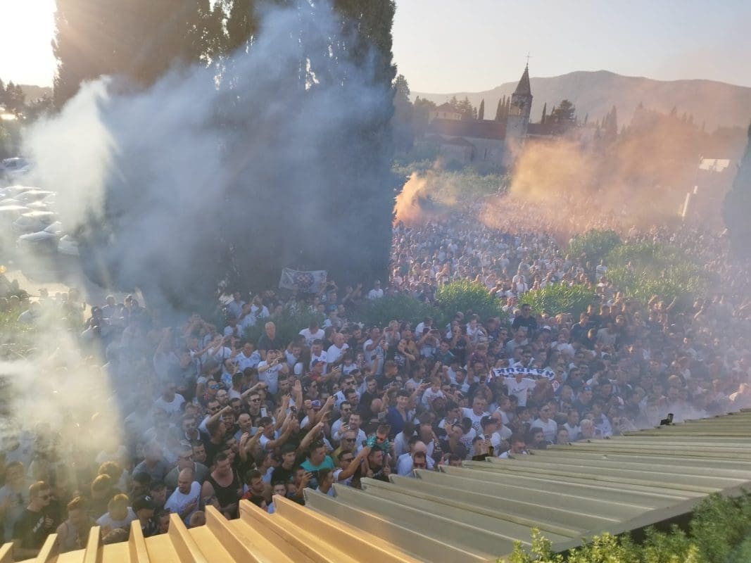 Ja te volim, Hajduče, hoćemo titulu, viče razdragana masa uz petarde i bengalke. Ivan Rakitić pozdravio ih je uz razvijeni šal i nastavio na presicu.