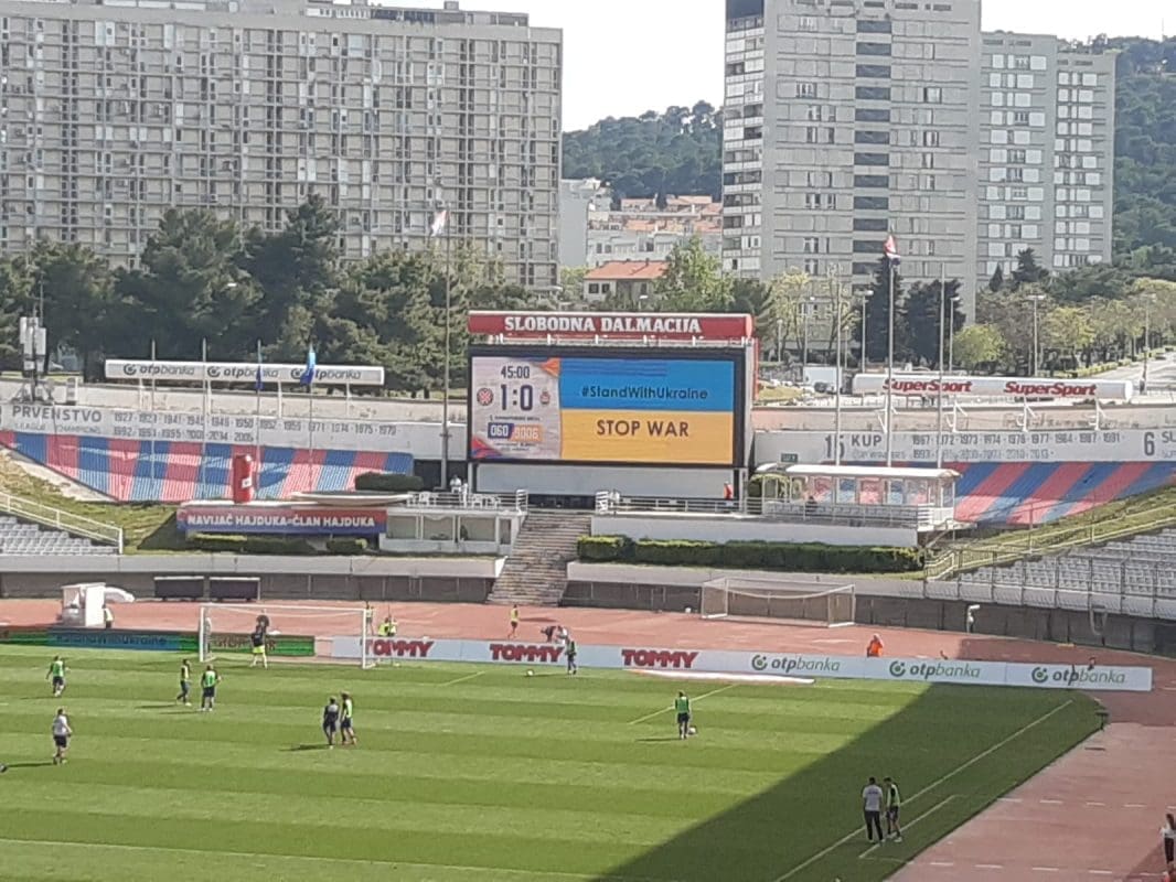 Pod geslom „Nogomet za mir“ na splitskom se Poljudu od 15 sati igrala prijateljska utakmica između Hajduka i ukrajinskog Šahtara. Cilj je ovoga susreta prikupljanje humanitarne pomoći za ukrajinsku djecu koja su zbog rata ostala bez roditelja. Tijekom utakmice aktivan je call centar, a i vi možete pomoći svojim pozivom na 0609006. (https://hajduk.hr/vijest/call-centar-na-poljudu-na-donatorski-broj-javljat-ce-se-poznati-sportasi-glumci-pjevaci-prvotimci-veterani--/14760).