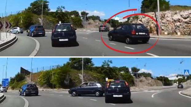 Corsa je vozila unutarnjom trakom, Škoda vanjskom. Corsa je htjela izaći i udara u Škodu. Video je objavila Facebook stranica Prometne zgode i nezgode.
