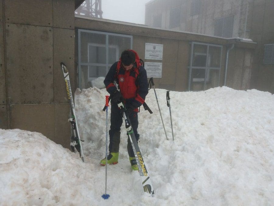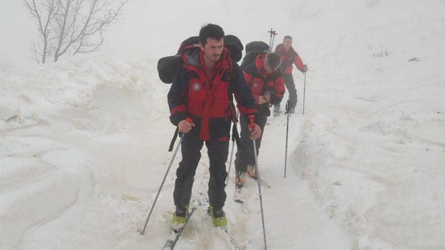 Zbog snježnih nanosa i loših vremenskih uvjeta djelatnik se nije mogao samostalno sići pa su mu spašavatelji na turno skijama dopremili krplje i dopratili ga nazad do ceste.