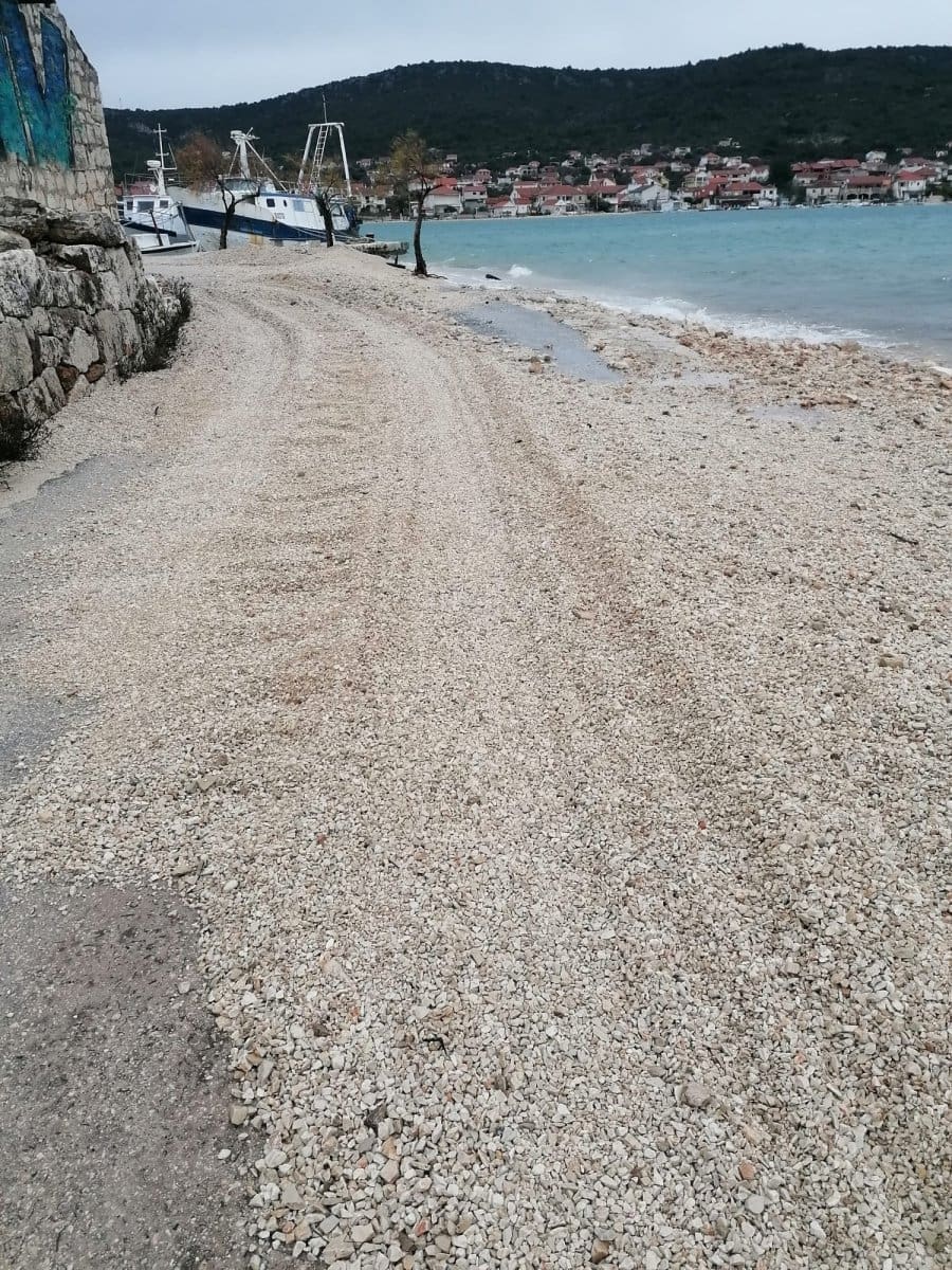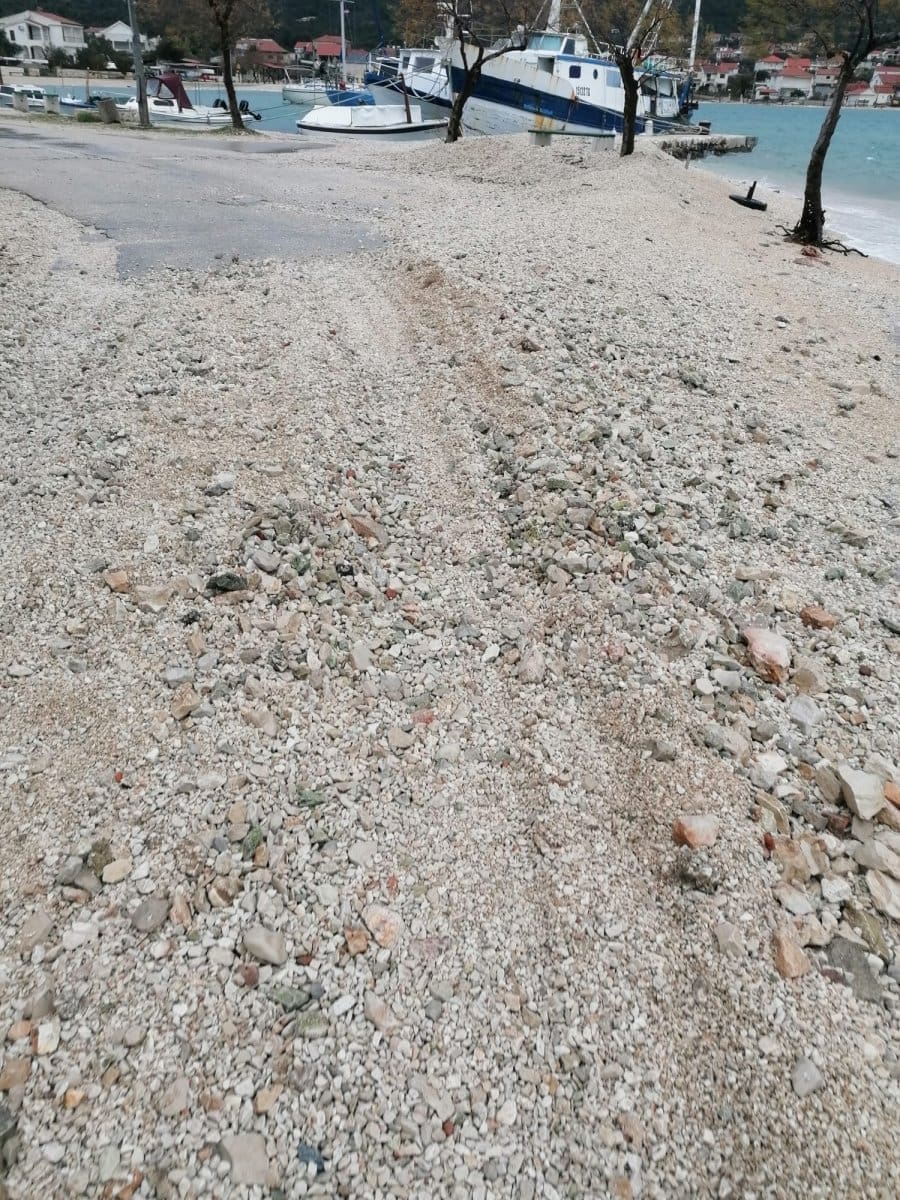 Od ranih jutarnjih sati, u subotu 21.siječnja, mještani Zagrade u Vinišću ne mogu autima proći jer je nevrijeme svu škalju sa plaže bacilo na put. Na drugom zaobilaznom putu su radovi tako da ukoliko vam treba neka hitna intervencija i morate da idete van Vinišća, jedini način je da spornu dionicu prepješačite i da vas sa druge strane čeka neko sa autom", kazuje nam čitateljica te dodaje da je Općina o ovom problemu obaviještena već prvoga dana, u subotu.