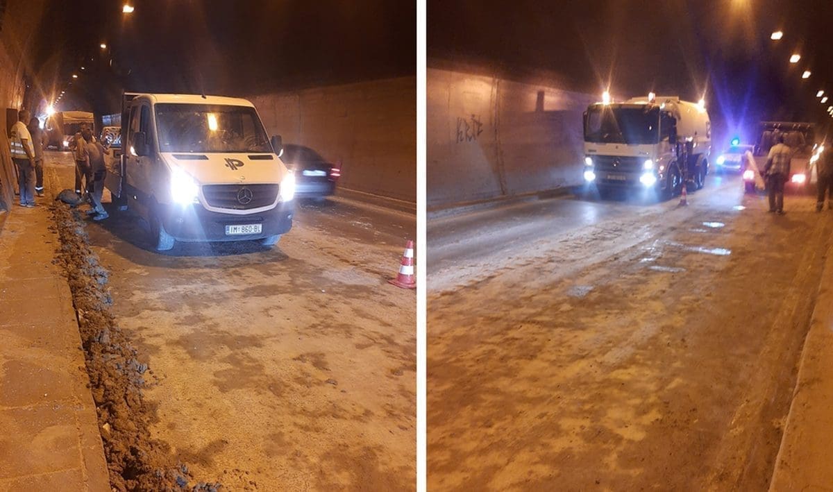 Dogodila se nesreća u tunelu, kada je dio zemlje koje je prenošeno vozilom palo i zablokiralo cestu. Kamioni sa zemljom ovih dana se redovito voze prema gradilištu Hotela Marjan, a komunalno redarstvo moli ih da zemlju polijevaju vodom.