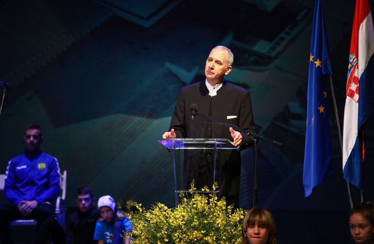 Iznimna mi je čast što i ove godine užežin fjere našega zaštitnika sv. Dujma, mogu pozdraviti predsjednika hrvatske Vlade g. Andreja Plenkovića.