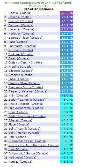Jest! Ako se pogleda kakve se najniže temperature zraka očekuju, jasno je da osobito dio obale i otoka može zabilježiti temperature kakve nisu zabilježene zadnjih 10, ponegdje i 50-ak godina. Ovakav nalet jake hladnoće više bi bio primjeren sredini zime, nego samom kraju veljače, a osobito prvim danima ožujka.