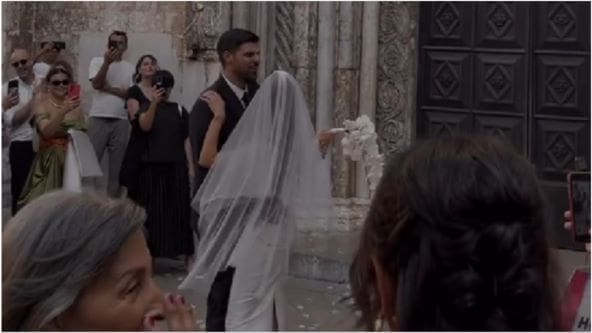 Antonio i Josipa plesali su ispred crkve pred uzvanicima i nisu skrivali koliko se vole. Osmijeh nisu skidali s lica, a dok su izlazili iz crkve, po njima su padali bijeli konfeti.