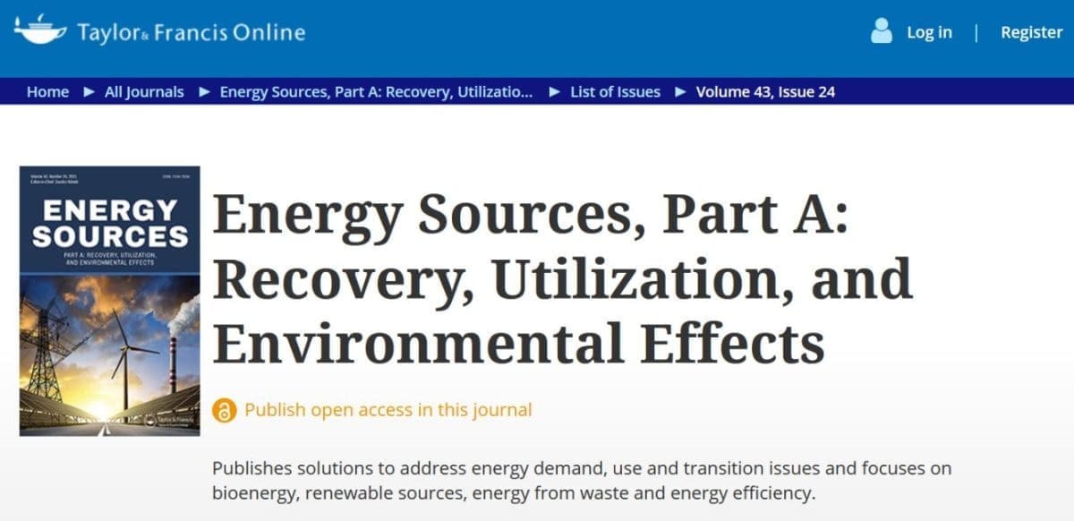 Urednik ste u uglednom časopisu Energy sources, Part A: Recovery, Utilization, and Environmental Effects. Koje se teme najčešće obrađuju?