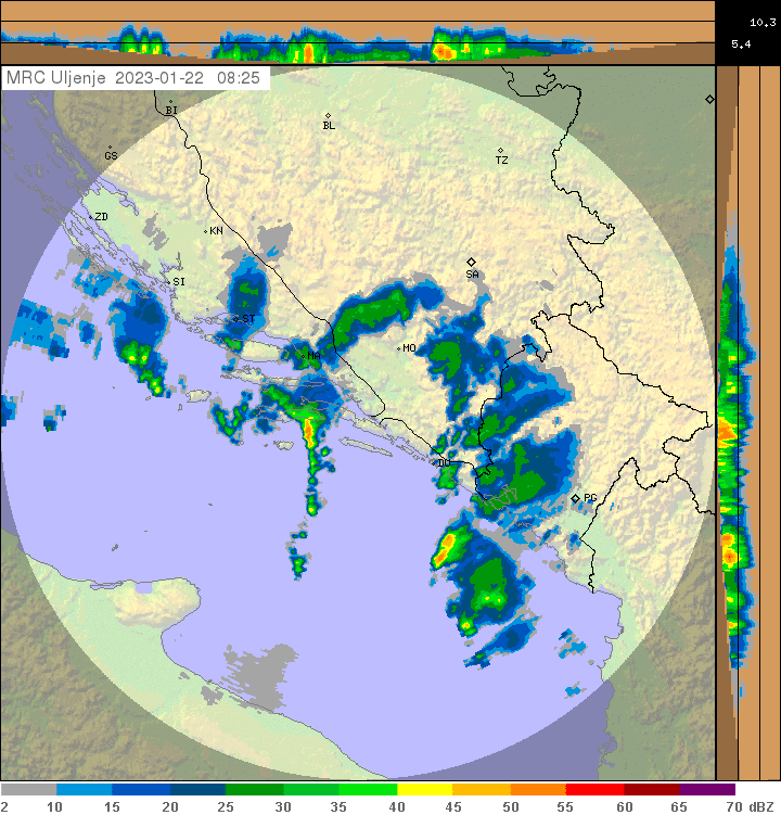 U trenutku pisanja, jači pljuskovi i neverini nalaze se na području južno od Dubrovnika, Korčule i Pelješca, te zapadno od Visa.