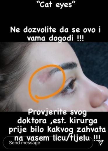 - Imam potrebu razjasniti situaciju vezanu za zahvat ukošavanja očiju na dotičnoj. Naime, dotična se nije pridržavala danih uputa nakon zahvata, već je sljedeći dan otišla u reality show. Preporuke nakon takve operacije su relativno mirovanje, pošteda, zabrana napora i pojačana pažnja kože oko operirane regije.