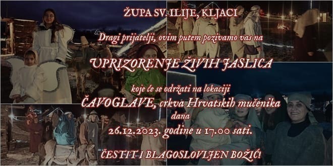 Program živih jaslica u Čavoglava održat će se na sv. Stjepana, 26. prosinca s početkom u 17 sati u župi sv. Ilije na platou kod Crkve Hrvatskih mučenika.