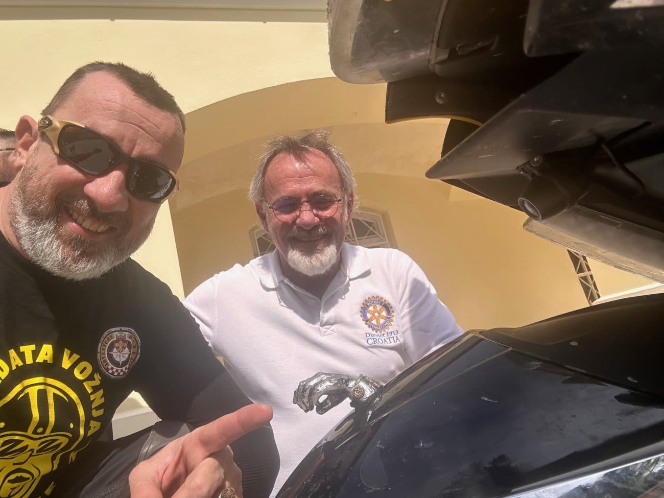 Otišao sam u Labin na poziv gospodina Larisa Juričića, koji je zajedno s vozačima s područja Labina i Istre prikupio čak 2.500 € donacija. Na motor se nije potpisao on, nego su napisali MEMORIJAL TAJO – Labin, u čast svojeg pokojnog prijatelja koji je poginuo prije 16 godina, a riječ je o Klaudiju Miletiću, zvanom Tajo. Njegovi prijatelji svake godine voze memorijal njemu u čast.