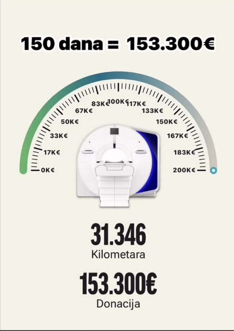Danas je točno 150. dan od početka vožnje. Do ovog trenutka prikupljeno je 153.300 € donacija. U tih 150 dana imao sam ukupno 45 voznih dana i prešao 31.346 kilometara.