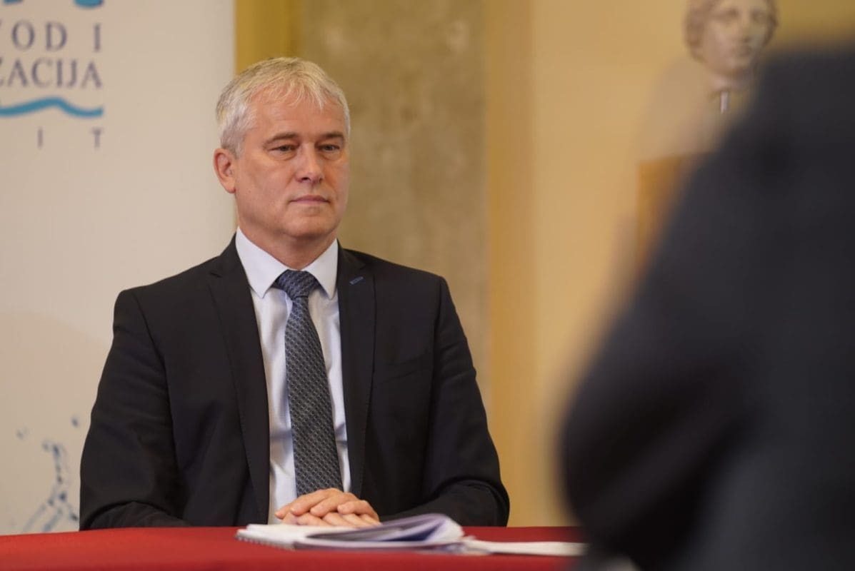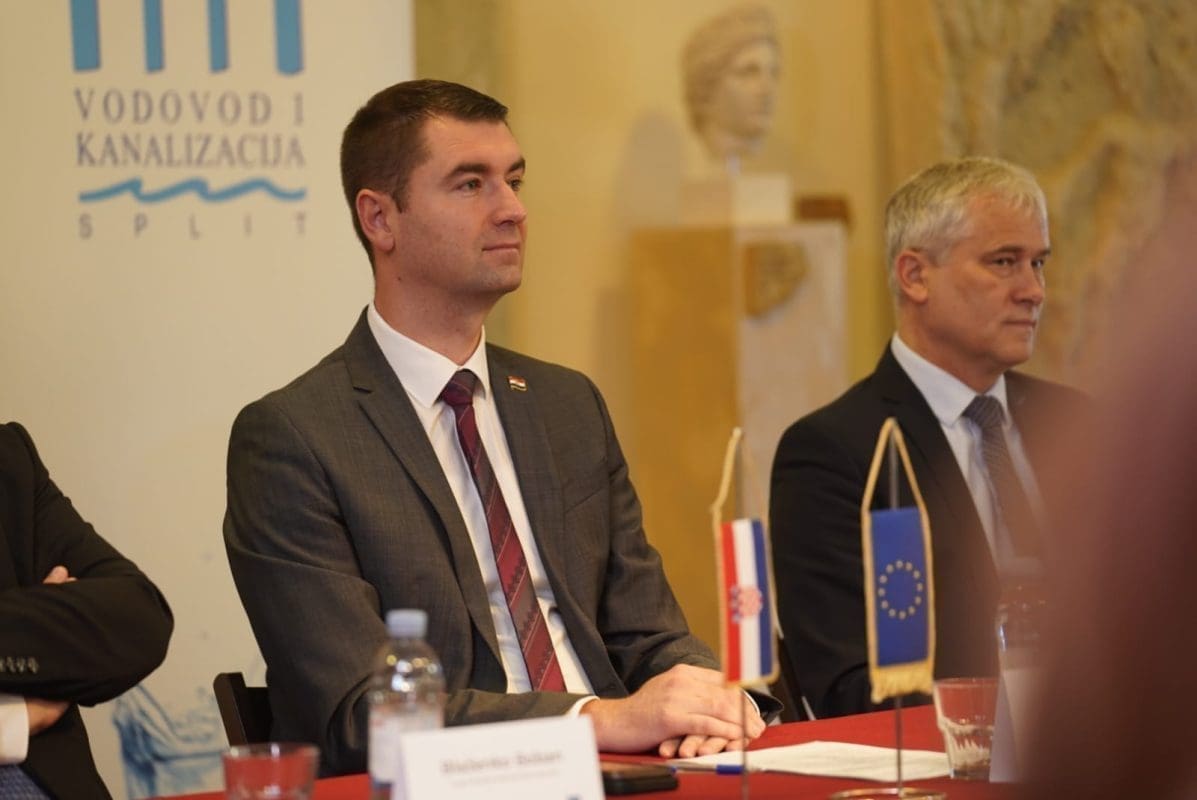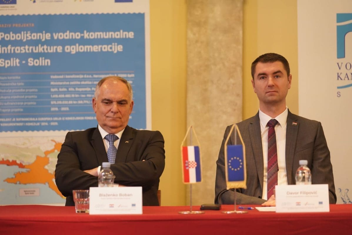 Na svečanom potpisivanju Ugovora – Rekonstrukcija i dogradnja sustava odvodnje i vodoopskrbe Grada Solina i Općina Podstrana, Klis i Dugopolje prisutnima su se obratili: Tomislav Šuta, direktor Vodovoda i kanalizacije d.o.o. Split, Dalibor Ninčević, gradonačelnik Grada Solina, Zoran Đuroković, generalni direktor Hrvatskih voda, Blaženko Boban, župan Splitsko-dalmatinske županije i Davor Filipović, ministar Ministarstva gospodarstva i održivog razvoja.