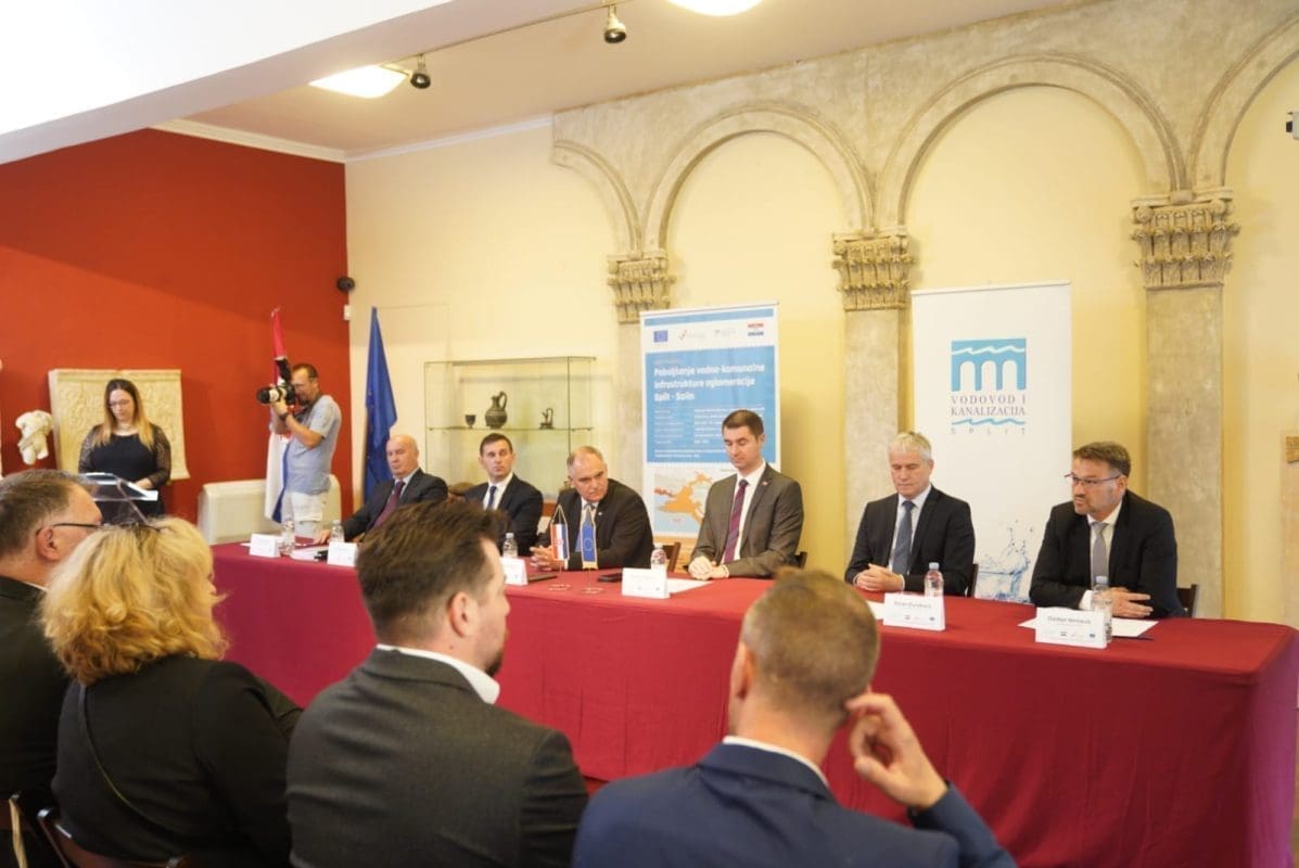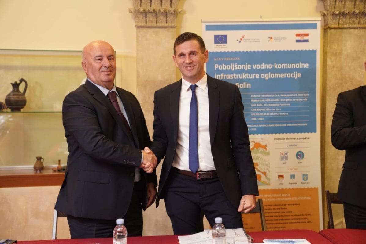 U petak, 28. listopada, u Domu kulture Zvonimir u Solinu, održano je svečano potpisivanje Ugovora, koji se odnosi na rekonstrukciju i dogradnju sustava odvodnje i vodoopskrbe Grada Solina i Općina Podstrana, Klis i Dugopolje u sklopu „Projekta poboljšanja vodno-komunalne infrastrukture Split – Solin“.