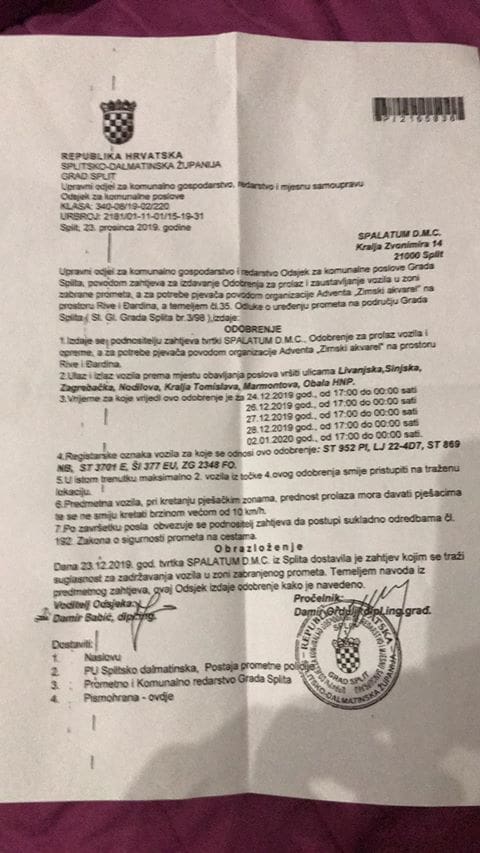 Dozvolu je izdao Grad gradskoj tvrtki Spalatum DMC, a detalje možete vidjeti u nastavku: