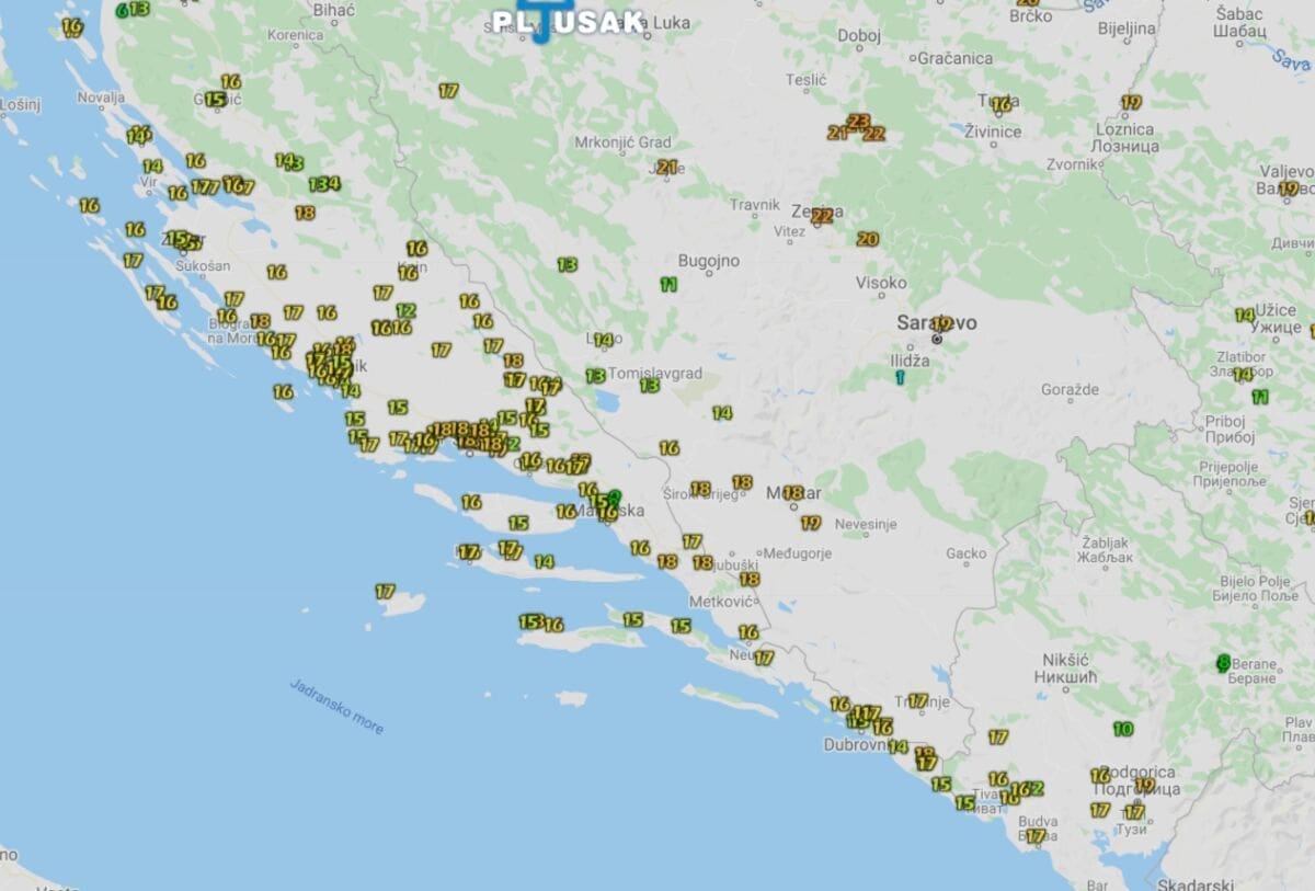 Primjerice, u ponedjeljak su najviše dnevne vrijednosti u Dalmaciji dosezale 18 Celzijevih stupnjeva, a zanimljivo je da su dijelovi susjedne Bosne i Hercegovine mjerili do čak 23 stupnja.