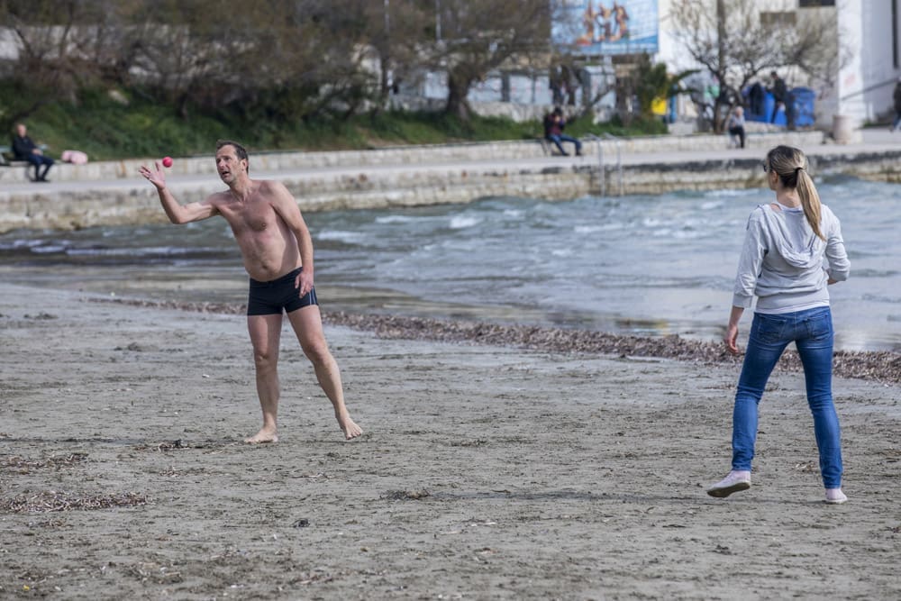 Očekivano, i mnogi su Splićani odlučili na otvorenom provesti toplu nedjelju. Temperature mora su daleko od pogodnih za kupanje, od 11 do 15 stupnjeva, no mnogima je godina šetnja ili rekreacija u more.