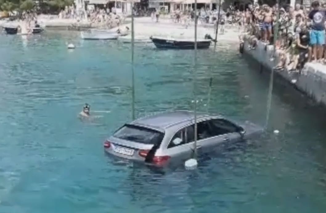 Auto je pao u more u trajektnoj luci u Drveniku kraj Makarske. Navodno je promašio rampu za ukrcaj. Ljudi su skakali u more kako bi izvukli zaglavljenog vozača.