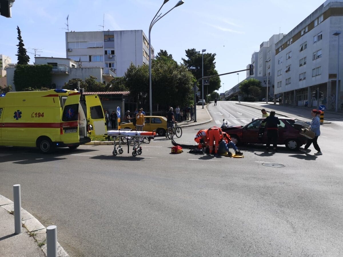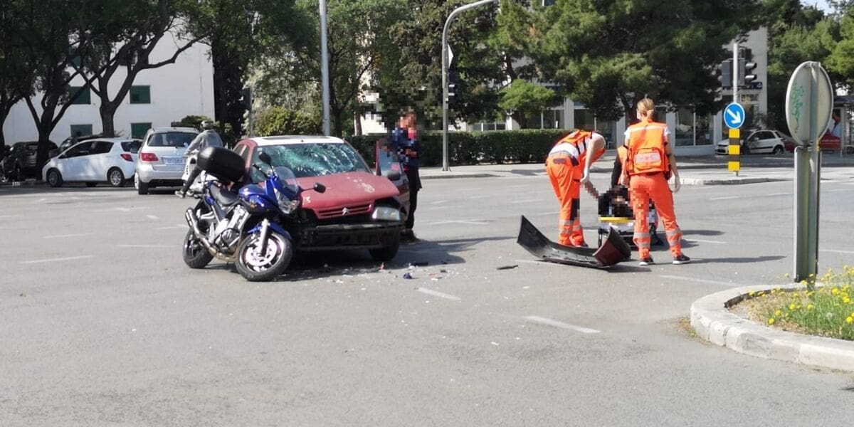 U sudaru su sudjelovali motocikl i osobni automobil, a motociklist je hitno prevezen u splitsku bolnicu.