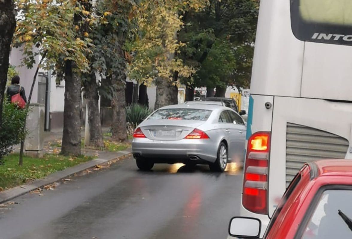 "Kolona, 15h, svi idu s posla i čekaju u koloni, ali uvijek se mora naći neki izrod. Vozi Mercedes, pa misli da može sve. Je li ima još negdje ovakvih budala ili samo kod nas u Brodu?" stoji u opisu fotografije