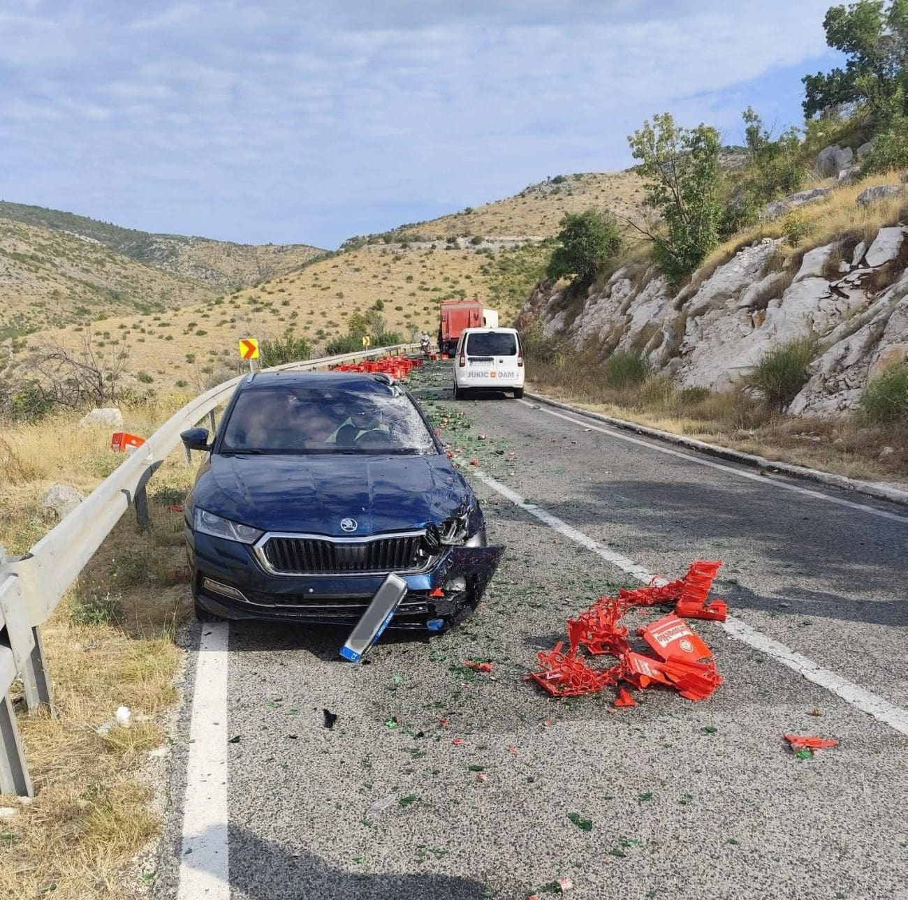 Kako nam je potvrdila splitska policija, nesreća se dogodila u 7:00, a pri sudaru su na cestu iz teretnog vozila ispale gajbe piva. Zbog gajbi na cesti je promet otežan, a policijski očevid je u tijeku.