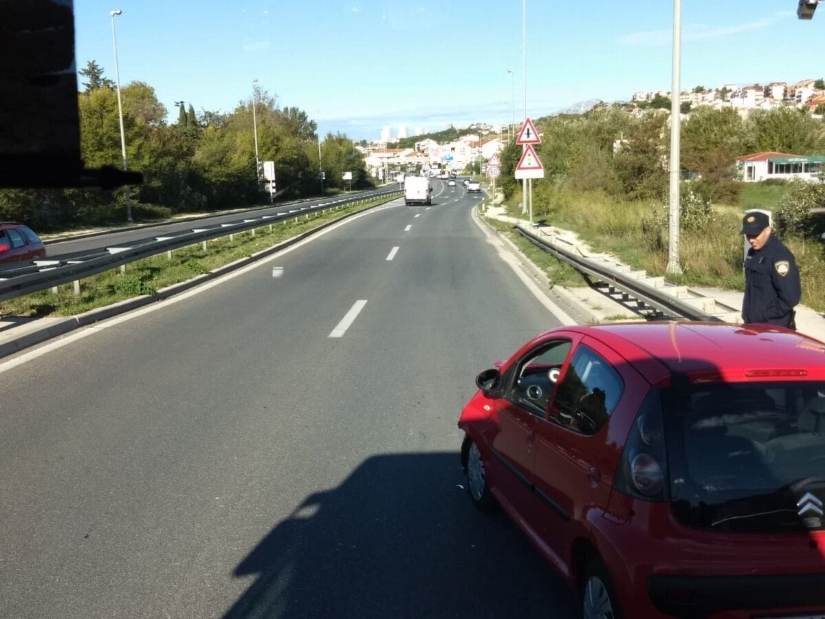 Jutros oko 9 sati Policijska uprava Splitsko-dalmatinska dobila je dojavu o prometnoj nesreći koja se dogodila na državnoj cesti D8 u mjestu Strožanac u smjeru Splita.
