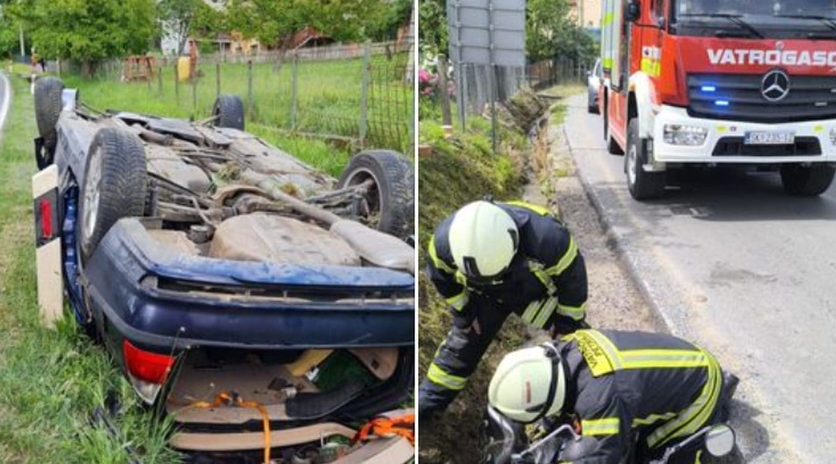Vatrogasci su dojavu o nesreći dobili oko 18:15, a fotografije auta koji je završio na krovu objavili su na Fejsu.