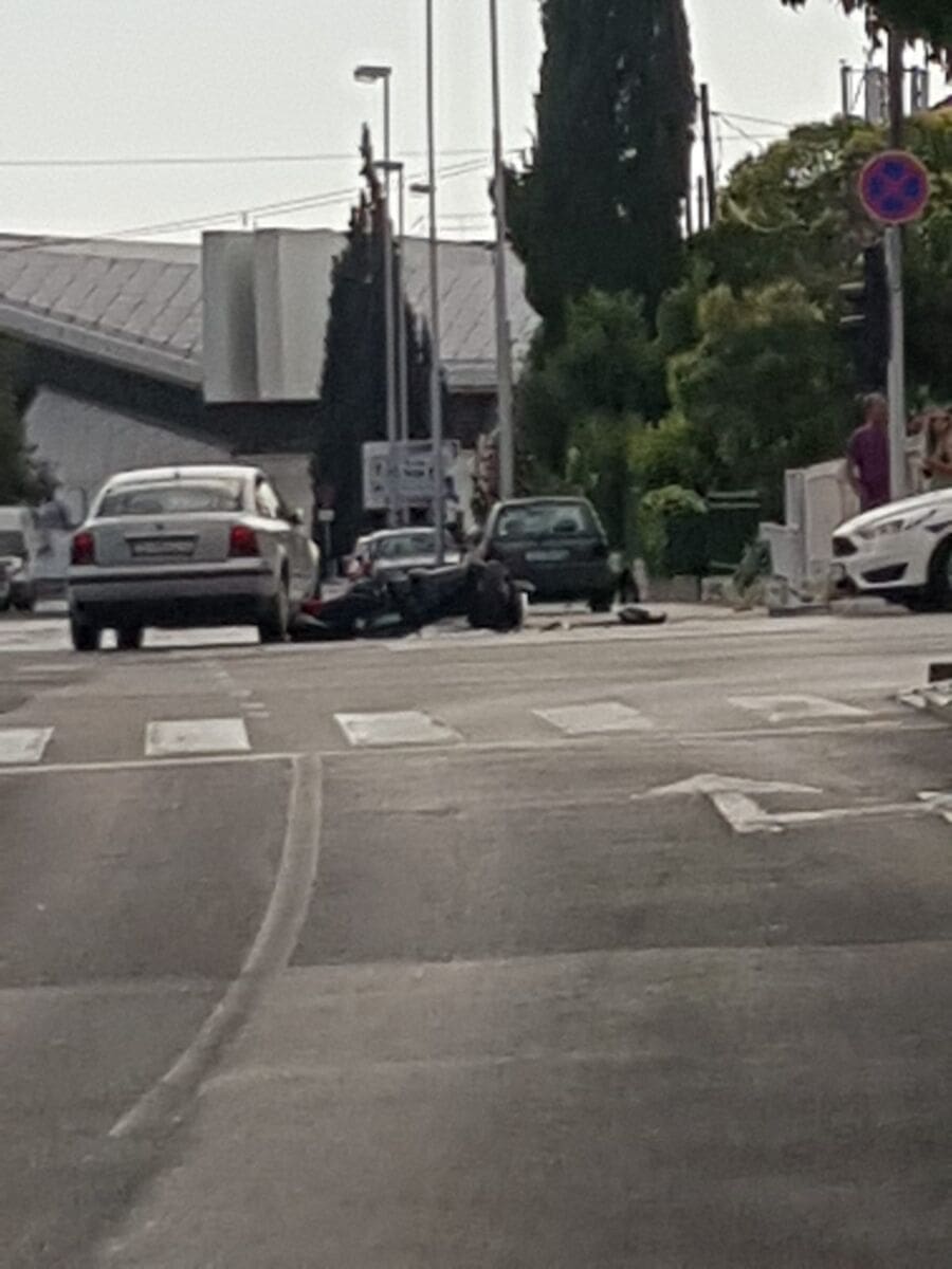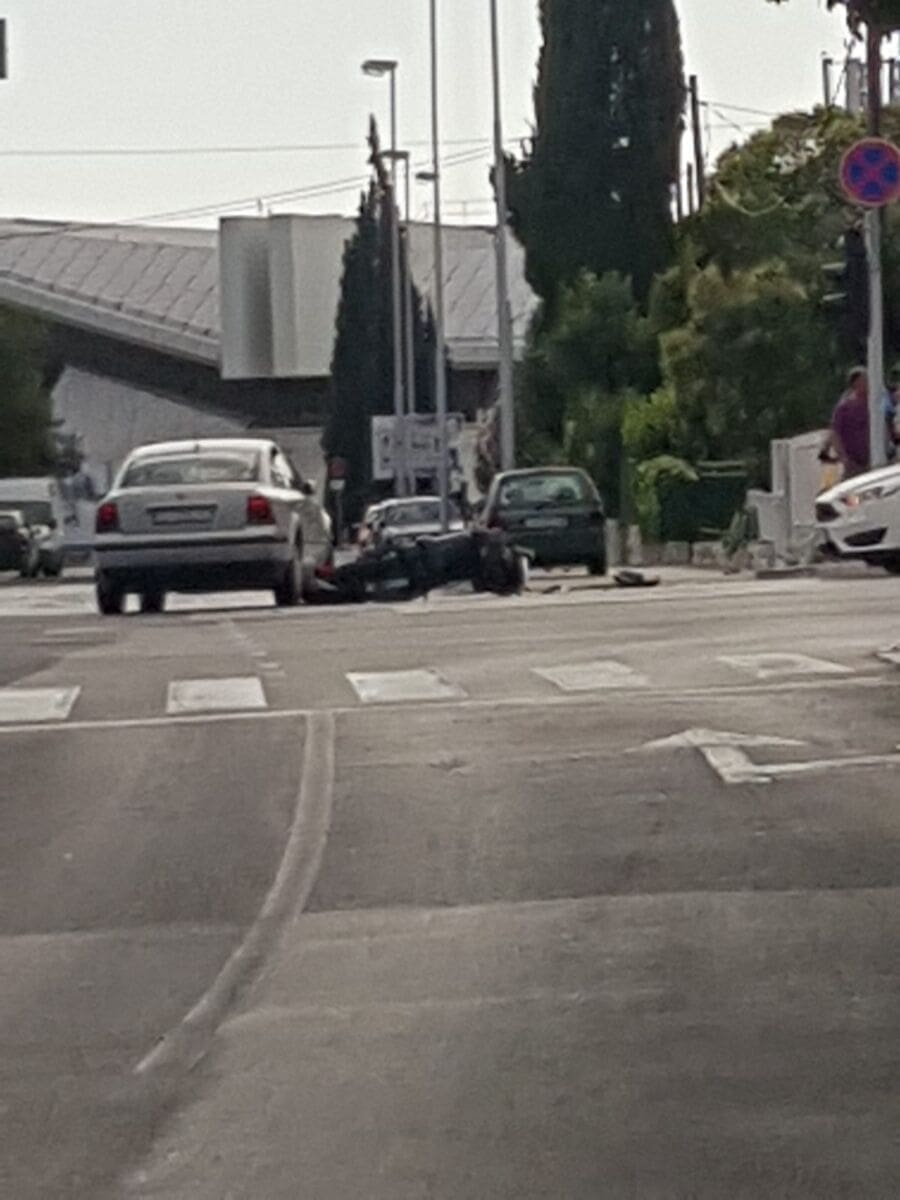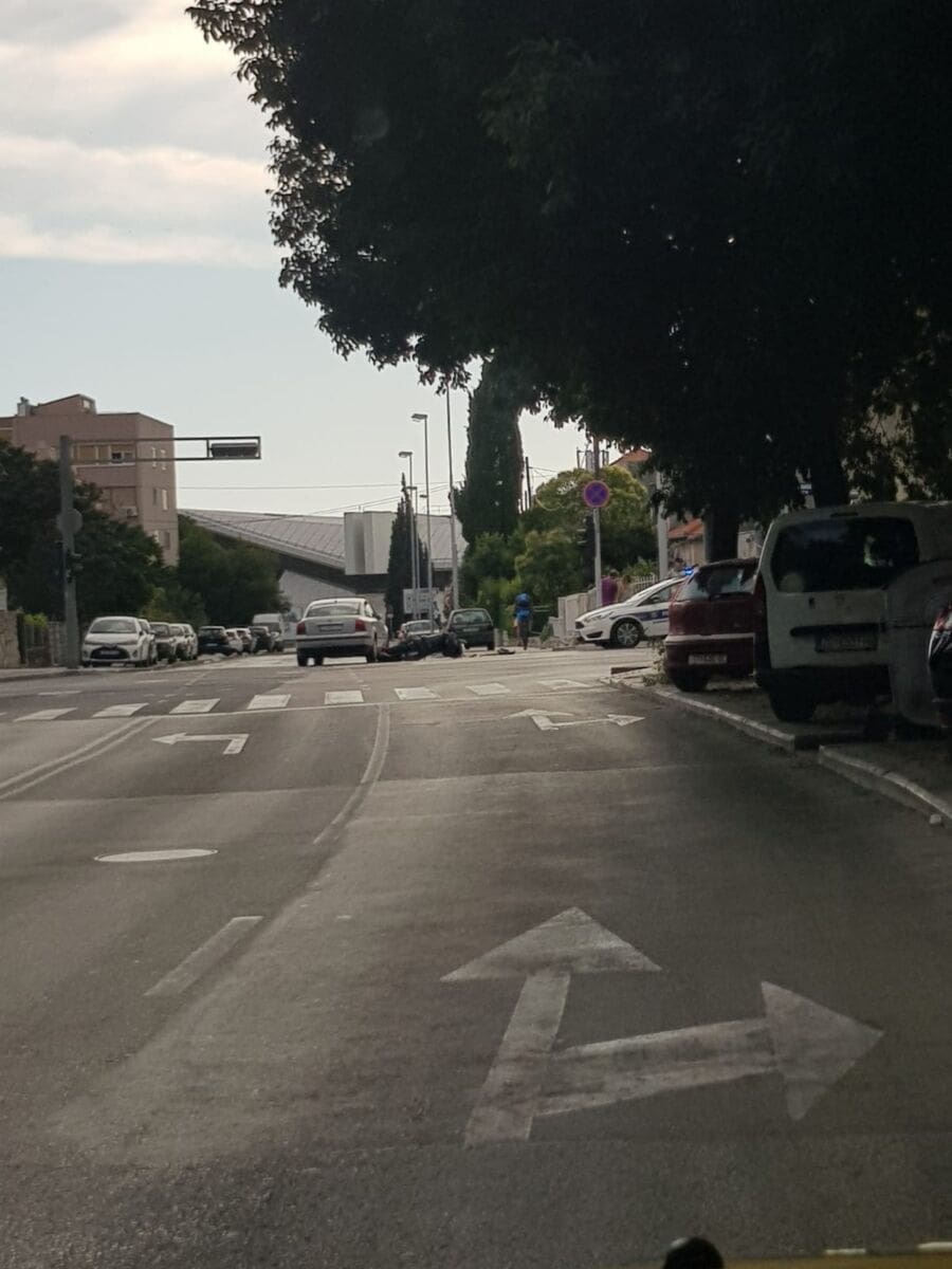 Iza 17 sati dogodila se prometna nesreća na križanju Dubrovačke i Kranjčevićeve ulice u Splitu. Naš čitatelj, koji se nalazio u blizini kada se zbila nesreća, kaže da je dio motocikla završio ispod automobila.