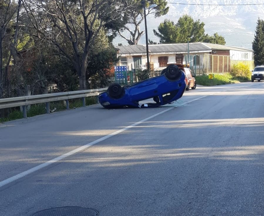 Jutro oko 8 sati put Dujmovače u Splitu, u Solinskoj ulici, dogodila se prometna nesreća kada je došlo do slijetanja osobnog vozila i prevrtanja na krov.