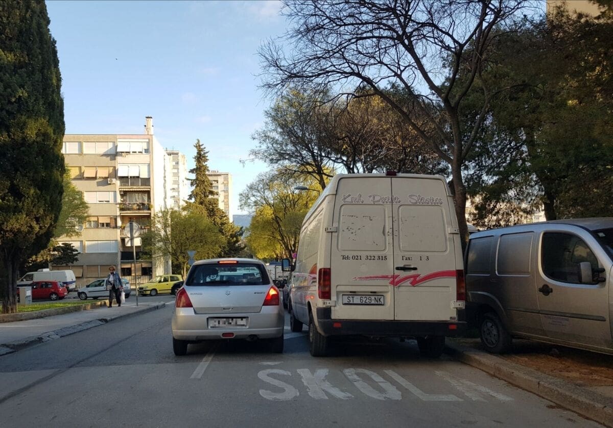U blizini križanja Vinkovačke i Valpovačke ulice na splitskim Plokitama dobro znani prizor i ovoga jutra. Niz automobila nepropisno je parkiran uz rub cesta, otežavajući tako normalno odvijanje prometa.