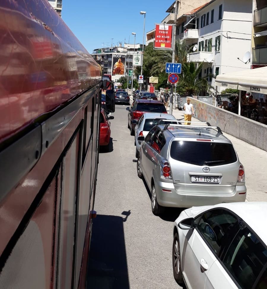 Kako smo ranije izvijestili, velike prometne gužve vladaju na prilazima splitskoj trajektnoj luci. Svaki sljedeći sati prema sredini dana gužva se povećavala, tako da se kolona stvorila i u dijelu Poljičke ceste pa se protežu već od Blatina.