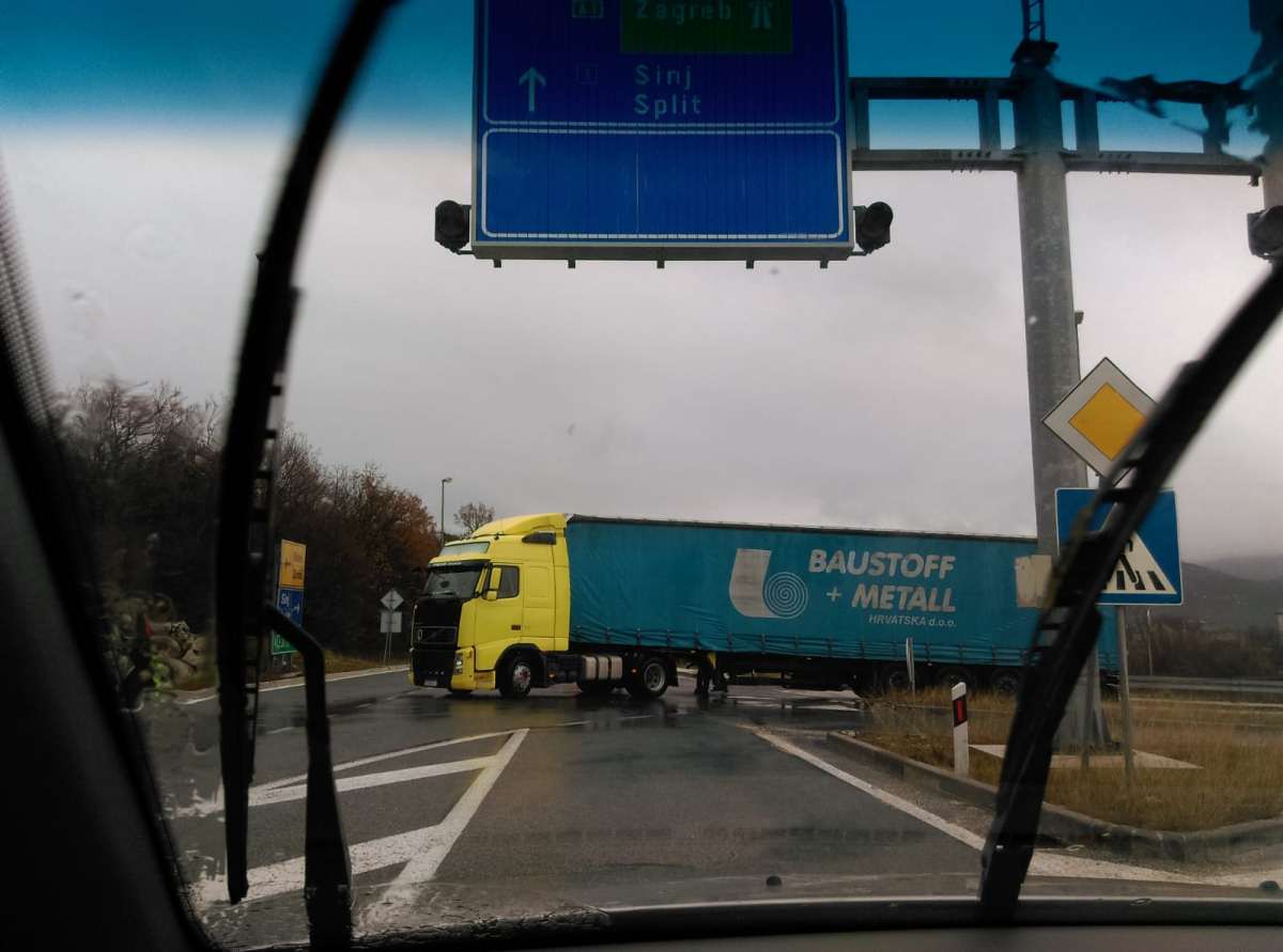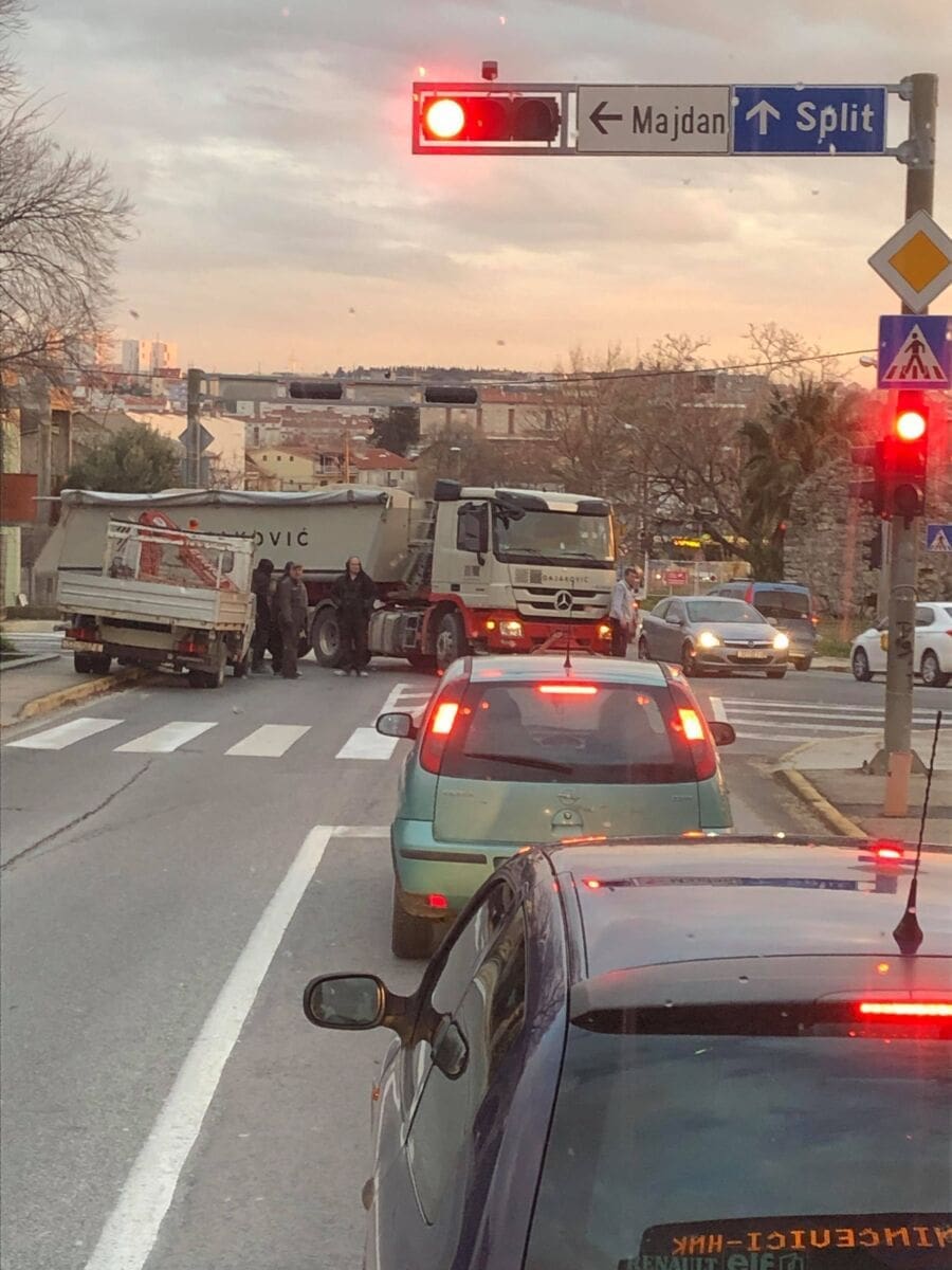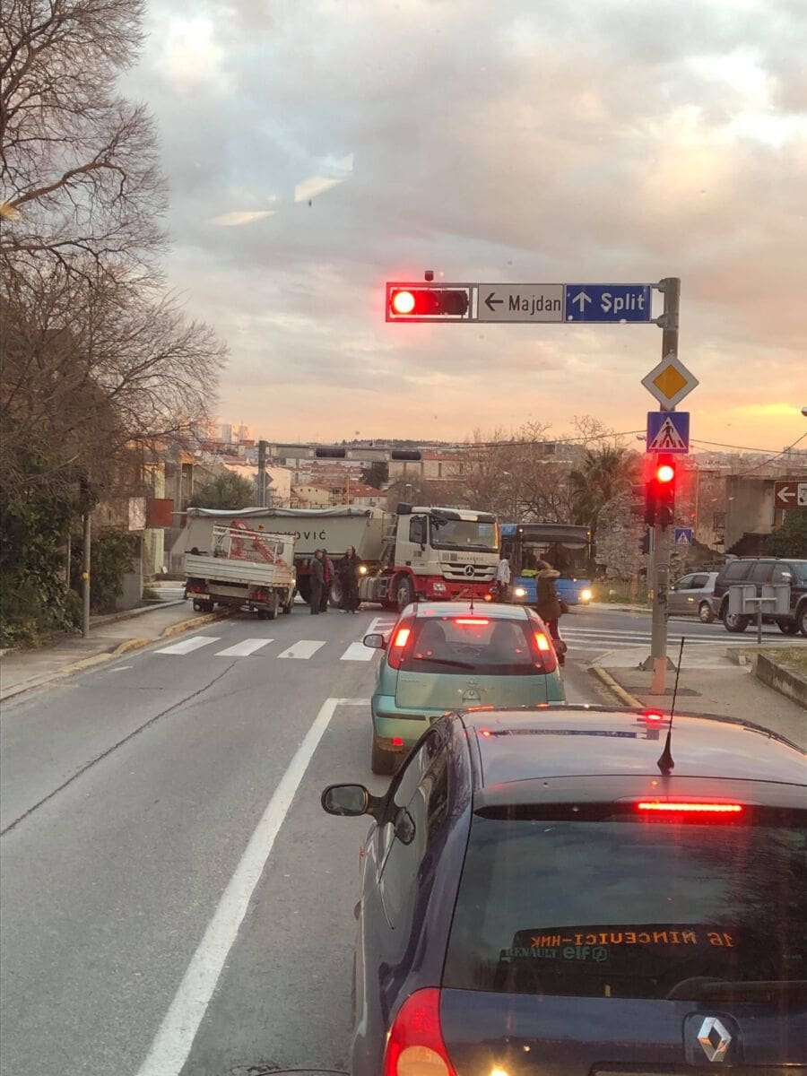 U Solinu na Staroj kliškoj cesti također su zavladale velike gužve nakon što je šleper pun materijala ostao u kvaru na raskrižju.