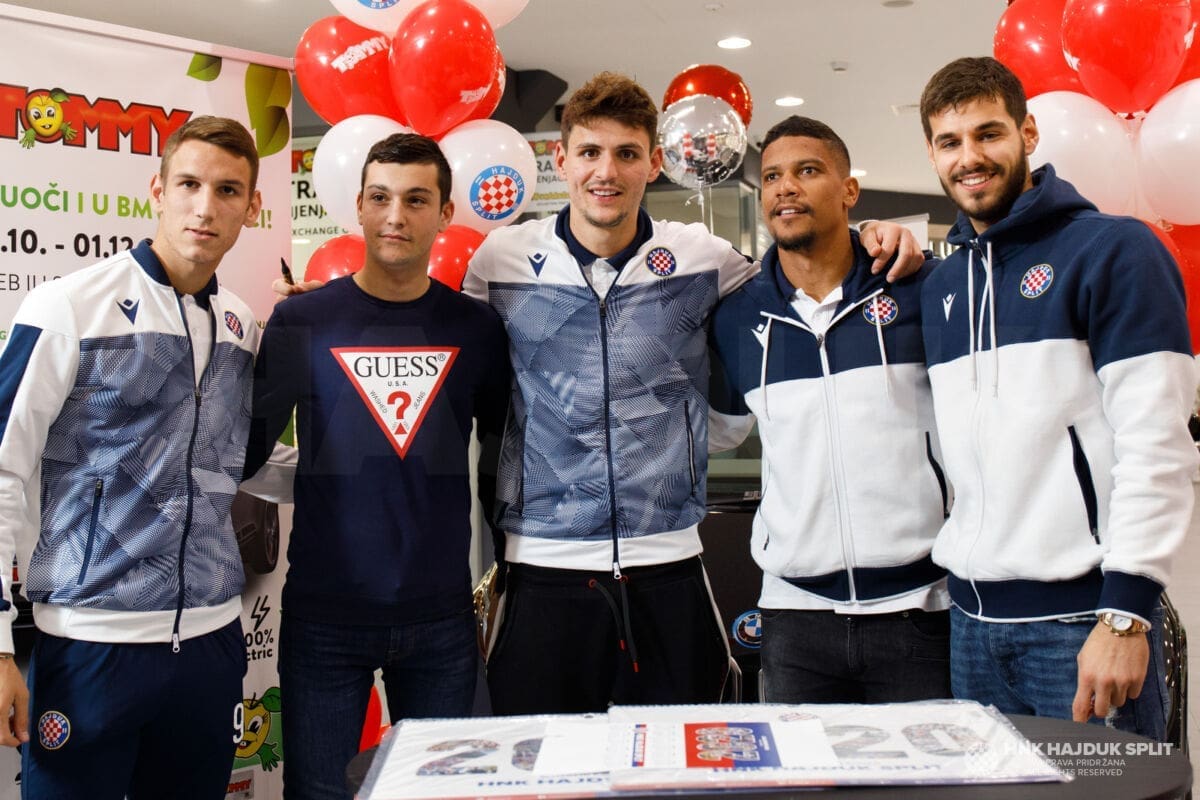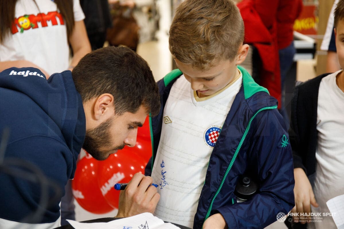 Strpljivo su hajdukovci potpisivali kalendare za uspomenu uz neizbježno fotografiranje. Sreća najmlađih, ali i onih starijih bila je neizmjerna, a Bijeli su imali čast i poslušati recitaciju pjesme koju je Klubu posvetila velika navijačica i obožavateljica Lorena Krstulović.